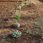 Ein Olivenbaum kann sehr tief reichende Wurzeln bilden. Steht er jedoch allein ohne pflanzliche Nachbarn, tut er das nicht und bildet eher flachere Wurzeln. Daher setzen wir auf den ersten Versuchsflächen Büsche, die nicht tief wurzeln können, neben die Olivenbäume. Diese zwingen den Olivenbaum, tiefer zu wurzeln, wo er weniger Konkurrenz hat und die feuchteren Bodenschichten erreicht. Zwischen den Büschen verändert sich der Boden; bei Wind sammeln sich dort Blätter und kleine Zweige, die den Boden bedecken, ihn feuchter halten und eine Mikrowelt von Kleinstlebewesen schaffen. Diese finden hier Nahrung, lockern den Boden, lüften ihn, bilden Humus und versorgen ihn mit Nährstoffen. Wir haben mit Rosmarin, Salbei, Lavendel und Kräuterbüschen begonnen, die zum Teil auch ätherische Düfte verströmen. Diese Düfte locken Nützlinge an, halten Schadinsekten fern, schaffen neue Lebensräume und fördern so die Biodiversität. Trotz mehrfacher Bewässerung haben sich Lavendel und Salbei jedoch nicht bewährt, da sie den hohen Temperaturen nicht standhalten konnten. Eine intensivere Bewässerung würde unser Ziel, signifikant weniger Wasser zu verbrauchen, verfehlen. Deshalb haben wir sie teilweise durch andere, buschigere und höher wachsende Pflanzen ersetzt und hoffen nun auf bessere Ergebnisse.
