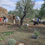 Die erste, skeptische Reaktion der Oliviers auf dieses Konzept war: „Ja, und wie lege ich dann meine Netze bei der Ernte aus? Und wie kann ich mit dem Traktor überall durchfahren?“ Diese Reaktion zeigt deutlich die doppelte Herausforderung, der wir uns gegenübersehen: die landwirtschaftliche und die mentale Transformation. Der Patenschafts-Olivenhain als Experimentallabor wird hier von großer Bedeutung sein. Mit dem Heranwachsen der Pflanzen werden wir neue Wege und praktische Lösungen entwickeln müssen, wie diese Prozesse funktionieren können. Bei den ausgewählten Nutzpflanzen, die jährlich geerntet werden, wird es darauf ankommen, ihre Vegetationszeiten und -rhythmen so abzustimmen, dass sie sich in der Aussaat und der Ernte ablösen und nicht parallel zueinander entwickelt werden.